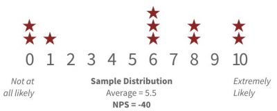 Un promedio de 5,5 no suena ni bien ni mal, sino “neutral”. Pero obtener un NPS de -40 es muy malo.